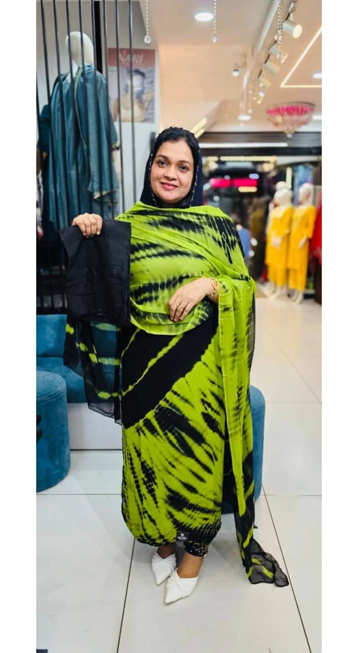 Elevate your everyday style with our beautifully crafted Georgette Shibori Print Dress Materials, designed for a perfect blend of elegance and comfort. Featuring traditional Shibori tie-dye patterns, each piece showcases unique handcrafted-inspired designs with vibrant color combinations.